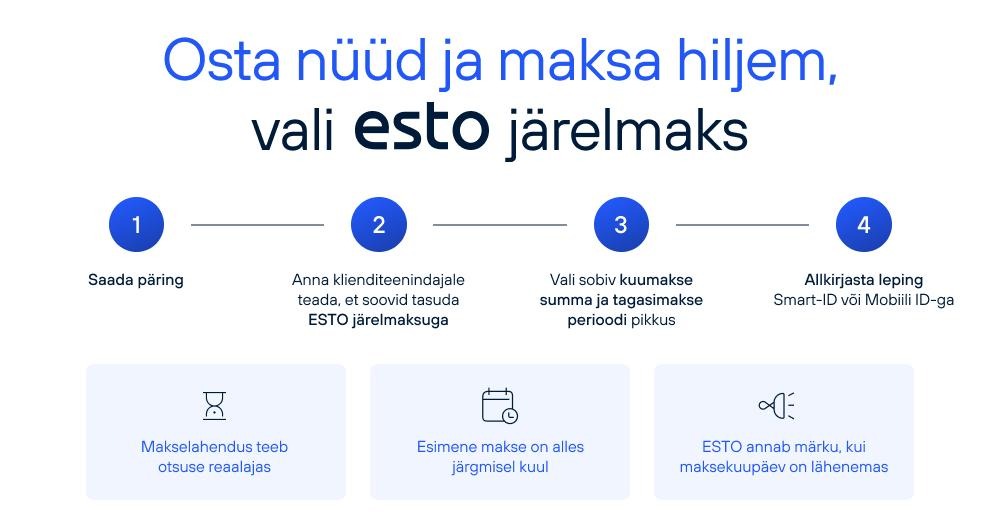 ESTO  järelmaksu puhul on tegemist innovatiivse makselahendusega, mis aitab koostada sulle sinu poolt valitud perioodi alusel maksegraafiku. Makselahendus teeb otsuse reaalajas ning aitab ostu sooritada vähem kui 60 sekundiga.