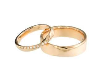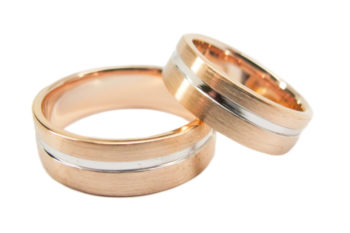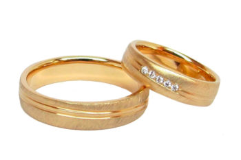 Pildil abielusõrmused roosast ja valgest kullast, briljandiga 5×0,02ct; käsitöö.