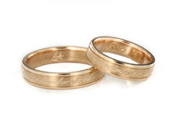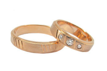 Eritellimusena valminud abielusõrmused. Pildil naise abielusõrmusel 12×0,01ct briljandid.