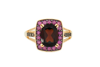 • Sõrmus granaadi, rodoliidi ja suitsukvartsiga